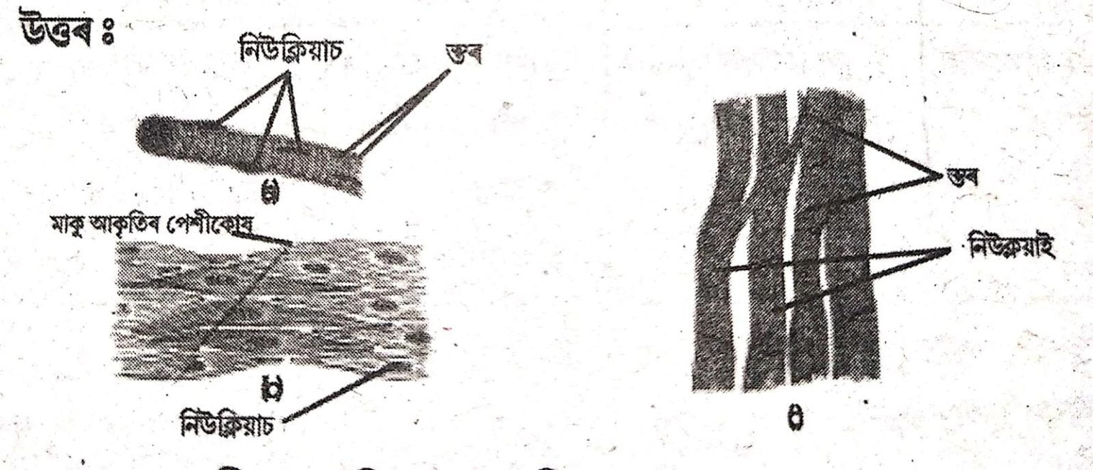 উত্তৰঃ [চিত্রঃ বিভিন্ন পেশীতন্ত্ৰ]