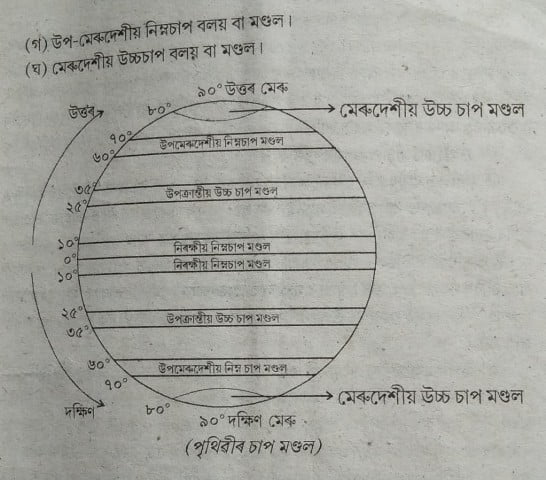 ৫। চিত্ৰৰ সহায়ত পৃথিৱীৰ প্ৰধান চাপবলয়কেইটাৰ বৈশিষ্ট্য আলোচনা কৰা।